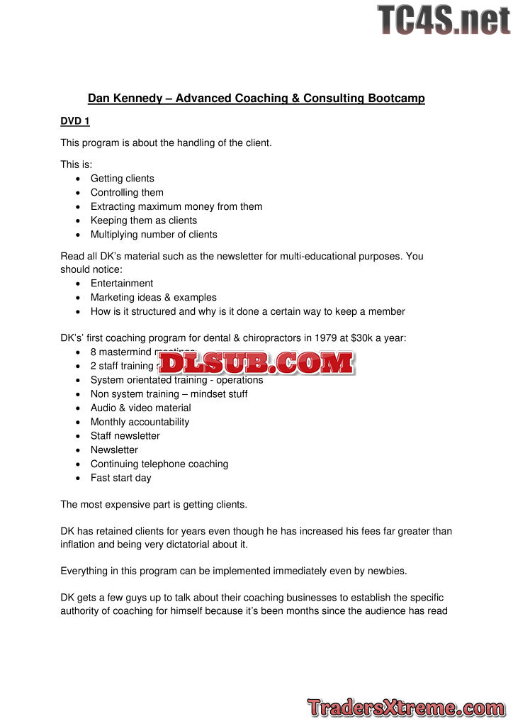 Dan Kennedy Advanced Coaching And Consulting Bootcamp Notes - JPG Image File