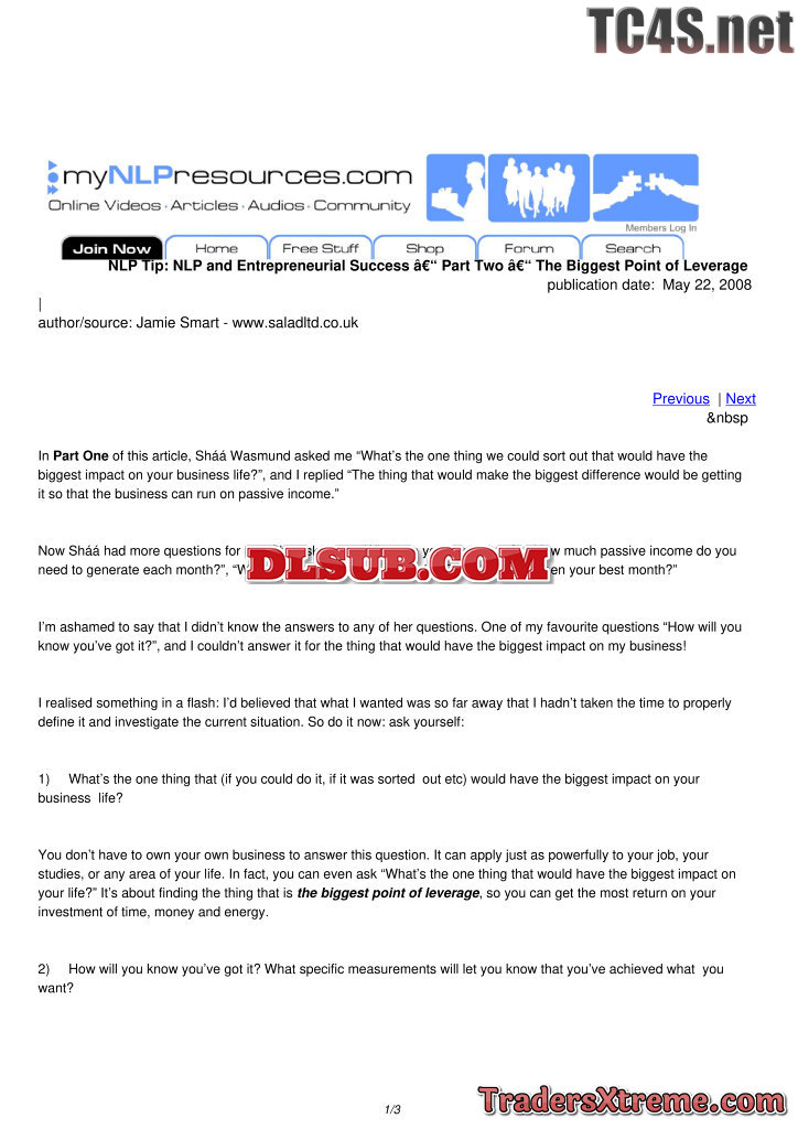 Nlp And Entrepreneurial Success Part Two The Biggest Point Of Leverage - JPG Image File