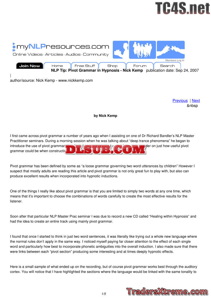 Pivot Grammar In Hypnosis Nick Kemp - JPG Image File