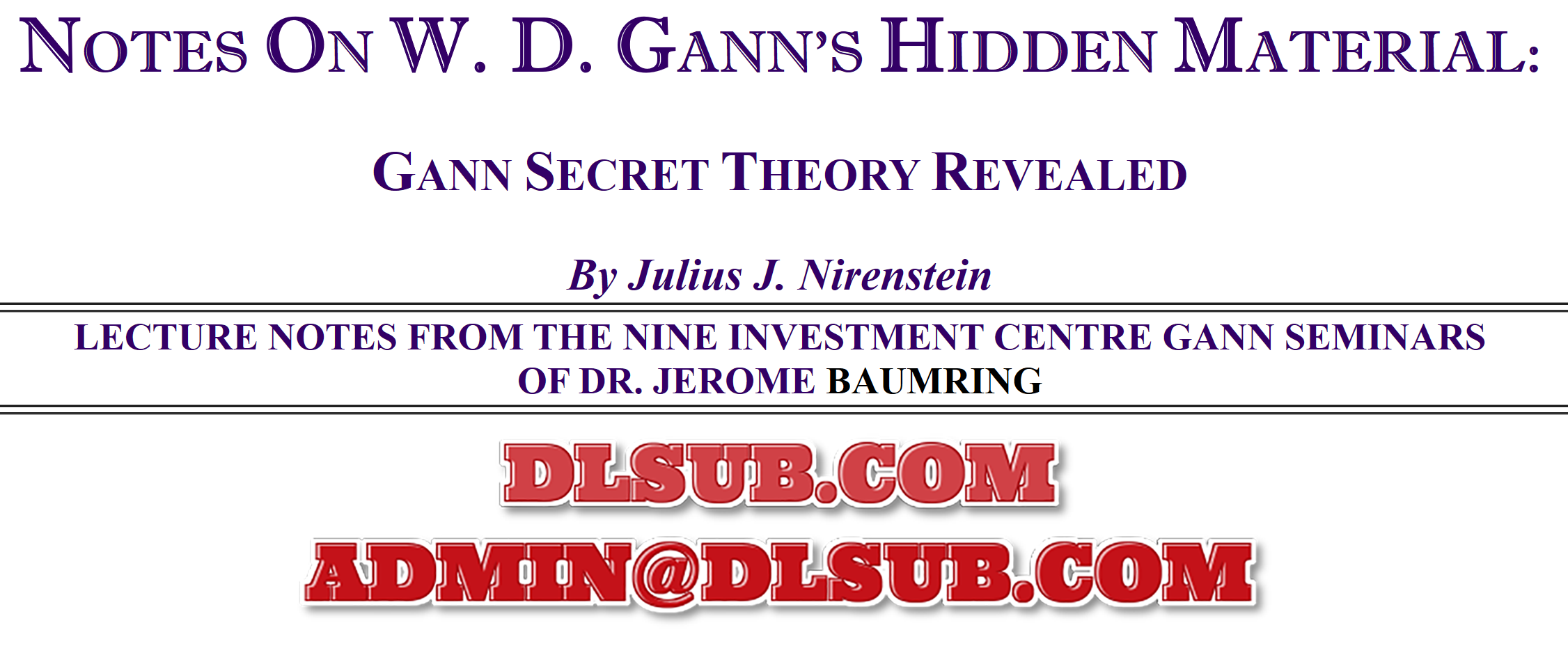 Julius Nirenstein Notes On Wd Ganns Hidden Material The Complete Gann I Ix Lecture Notes Usd 1500 - PNG Image File