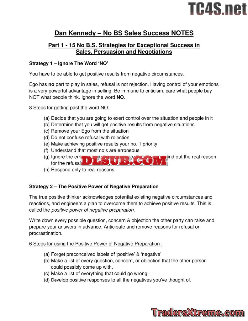 Dan Kennedy No Bs Sales Success Notes - JPG Image File