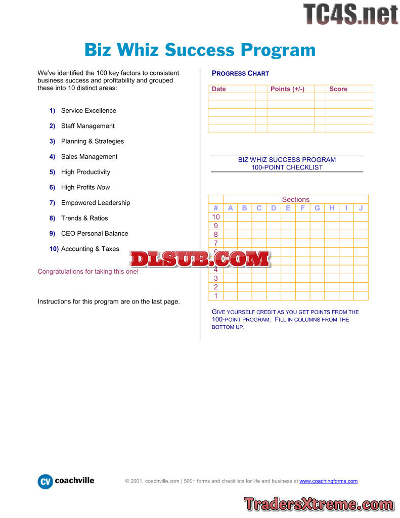 Biz Whiz Success Program 100 Key Factors To Consistent Business Success And Profitability - JPG Image File