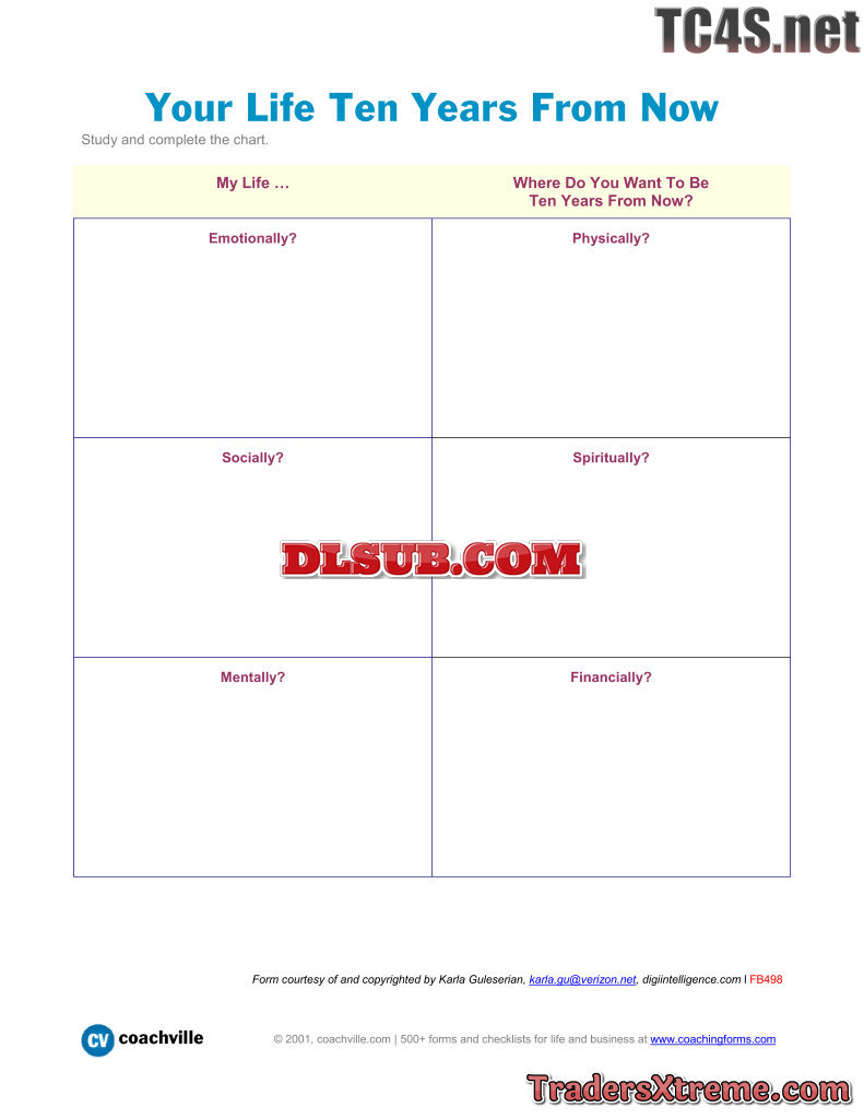 Chart For Evaluating Your Life In Six Areas Ten Years From Now - JPG Image File