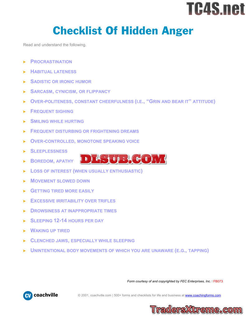 Checklist Of Hidden Anger - JPG Image File