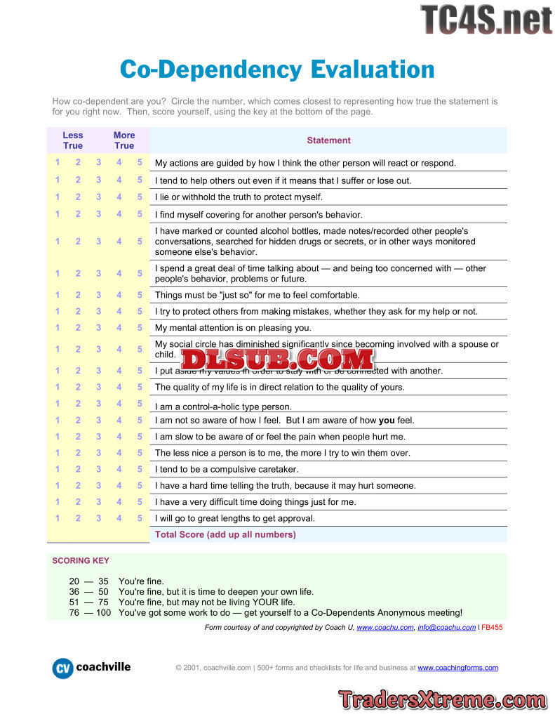 Co Dependency Evaluation A Test To Evaluate Your Level Of Co Dependence - JPG Image File