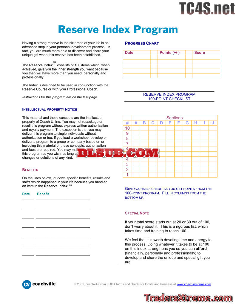 Reserve Index Program 100 Items To Gaining Inner Strength - JPG Image File