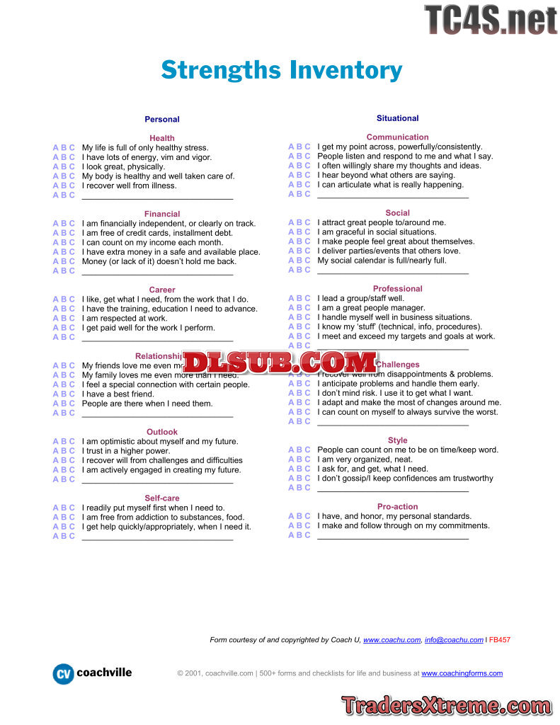 Strengths Inventory Checklist To Determine Your Personal And Situational Strengths - JPG Image File