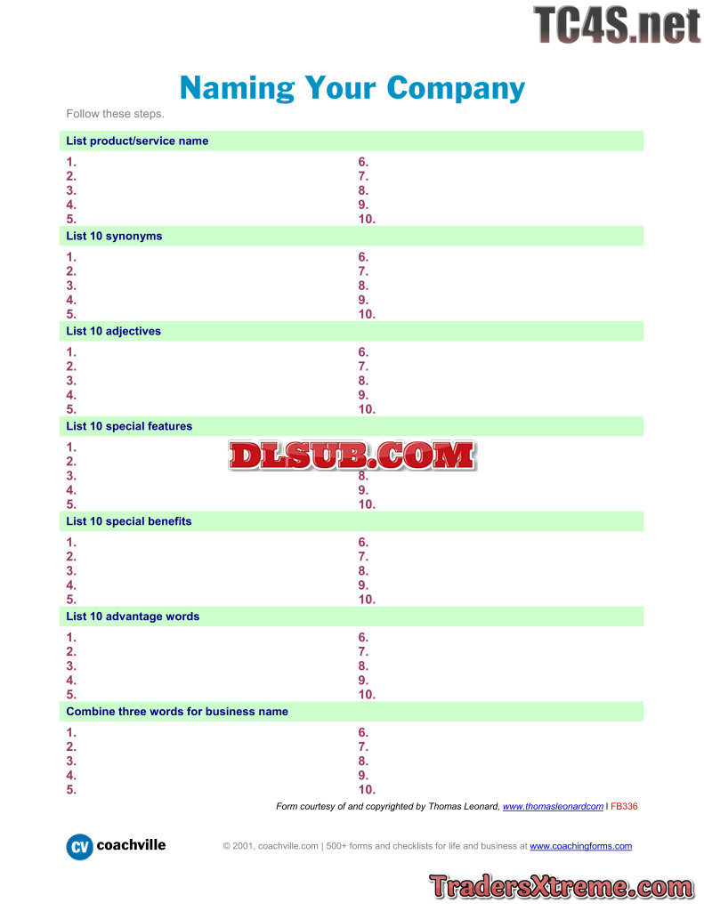 A Worksheet For Naming Your Company - JPG Image File