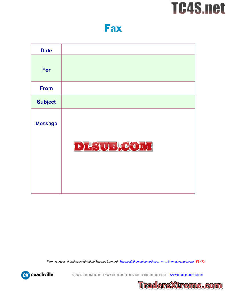 Fax Cover Template - JPG Image File