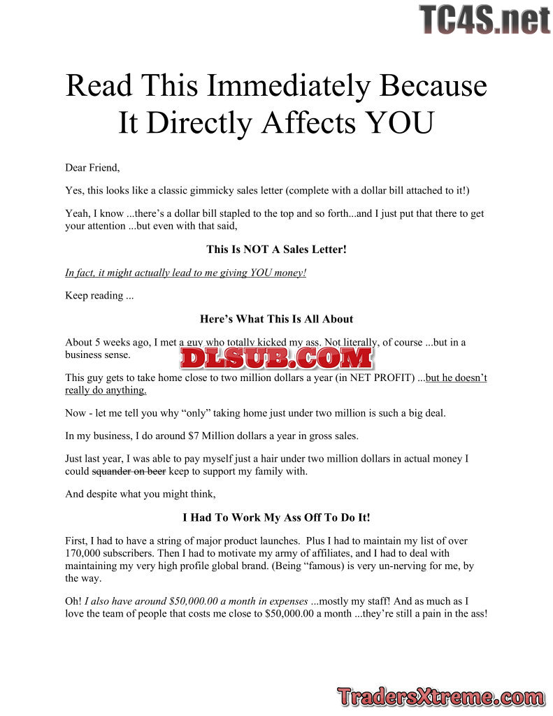 One Man Millions Sales Letter - JPG Image File