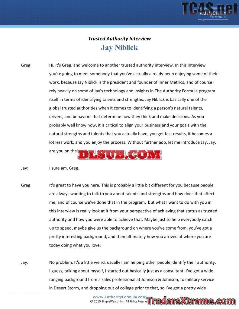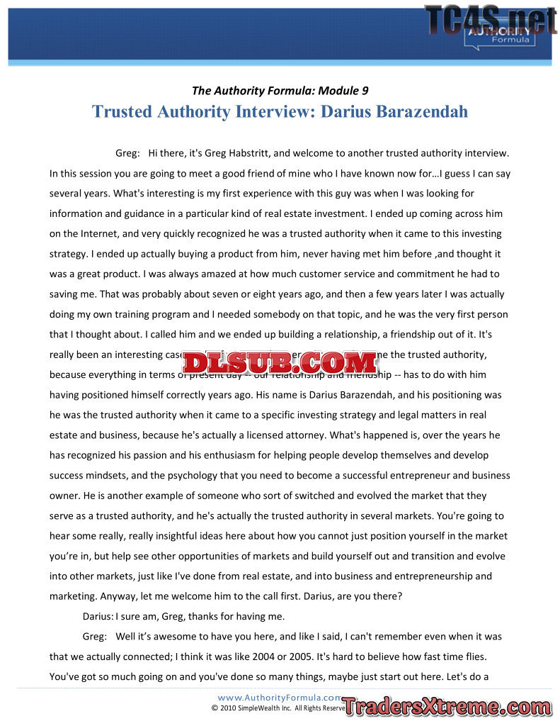 Greg Habstritt Trusted Authority Formula Usd 997