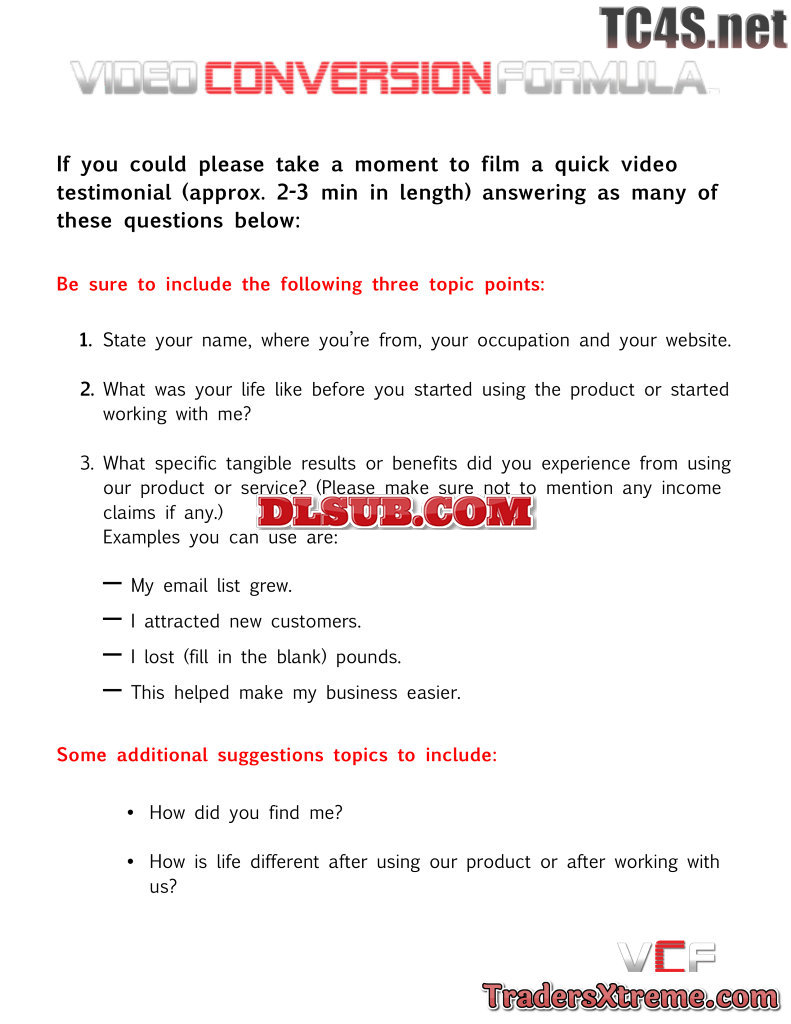 Video Testimonial Framework Formula - JPG Image File