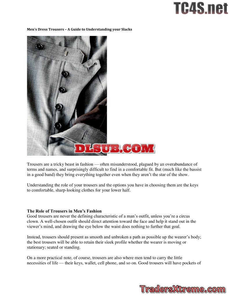 Mens Dress Trousers A Guide To Understanding Your Slacks - JPG Image File