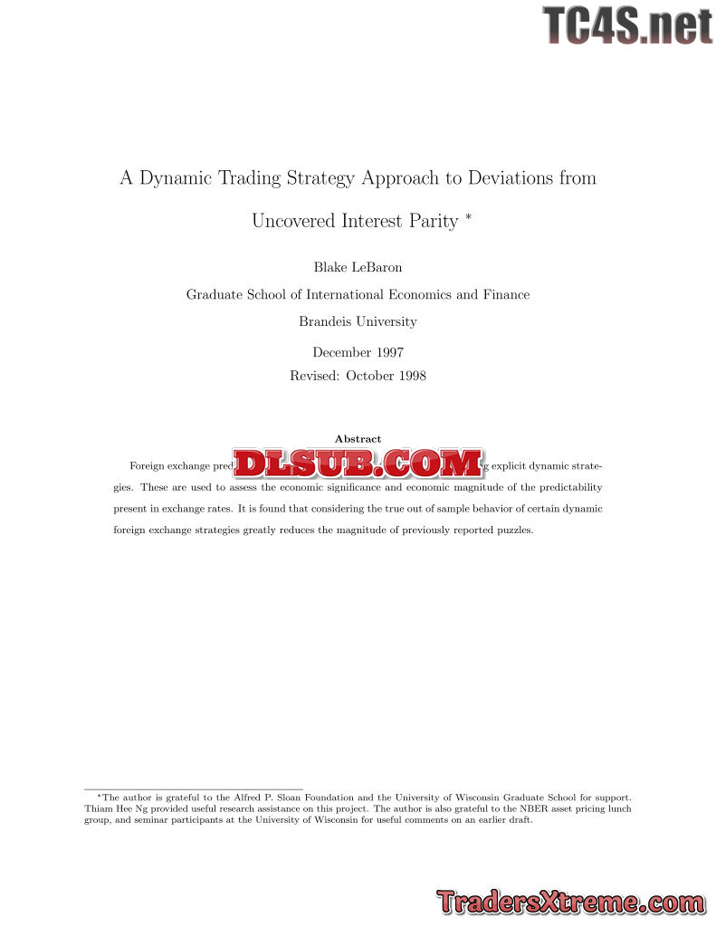 Blake Lebaron A Dynamic Trading Strategy Approach To Deviations From Uncovered Interest Parity