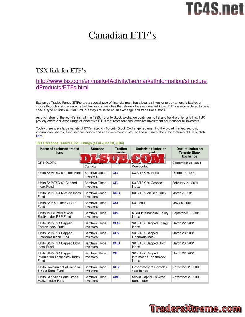 Tsx Exchange Traded Fund Listings - JPG Image File