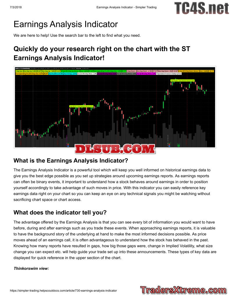 Earnings Analysis Indicator Simpler Trading - JPG Image File