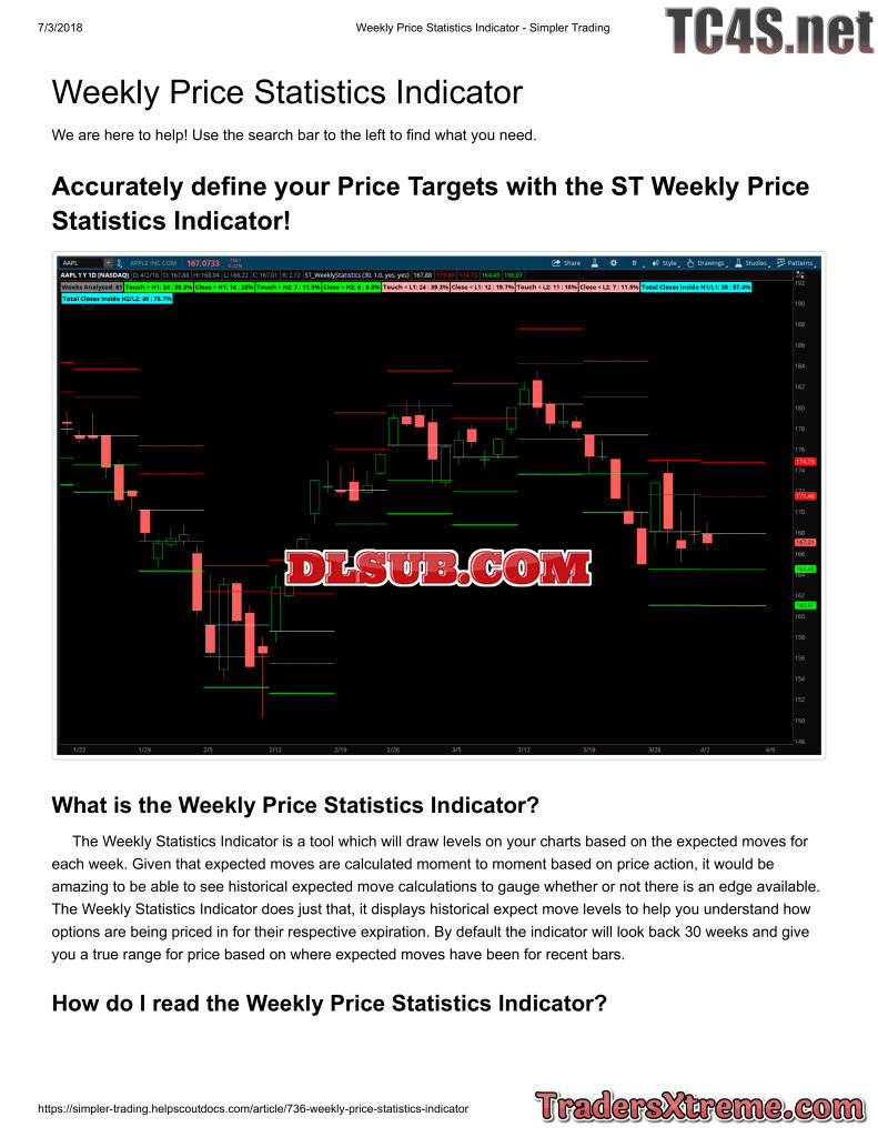 Weekly Price Statistics Indicator Simpler Trading - JPG Image File