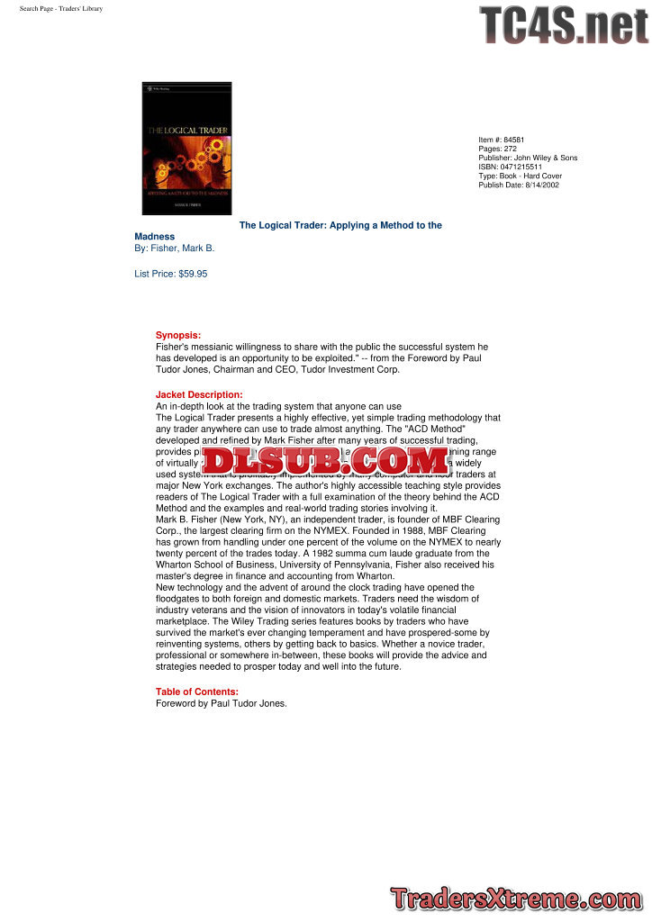 Mark B Fisher The Logical Trader Applying A Method To The Madness - JPG Image File